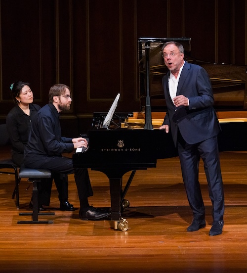 A gently restrained opening “Liebesbotschaft” segued into the foreboding “Kriegers Ahnung.” Here, the piano’s ominous opening chords paved the way to Goerne’s smoky concentration in the low register and supple text inflection. The performance traced and delineated light and dark with masterful subtlety. In “Frühlingssehnsucht,” shared melodic lines bloomed with real intimacy, each “Wohin?” and “Hinab” phrase shaped like inner sighs.